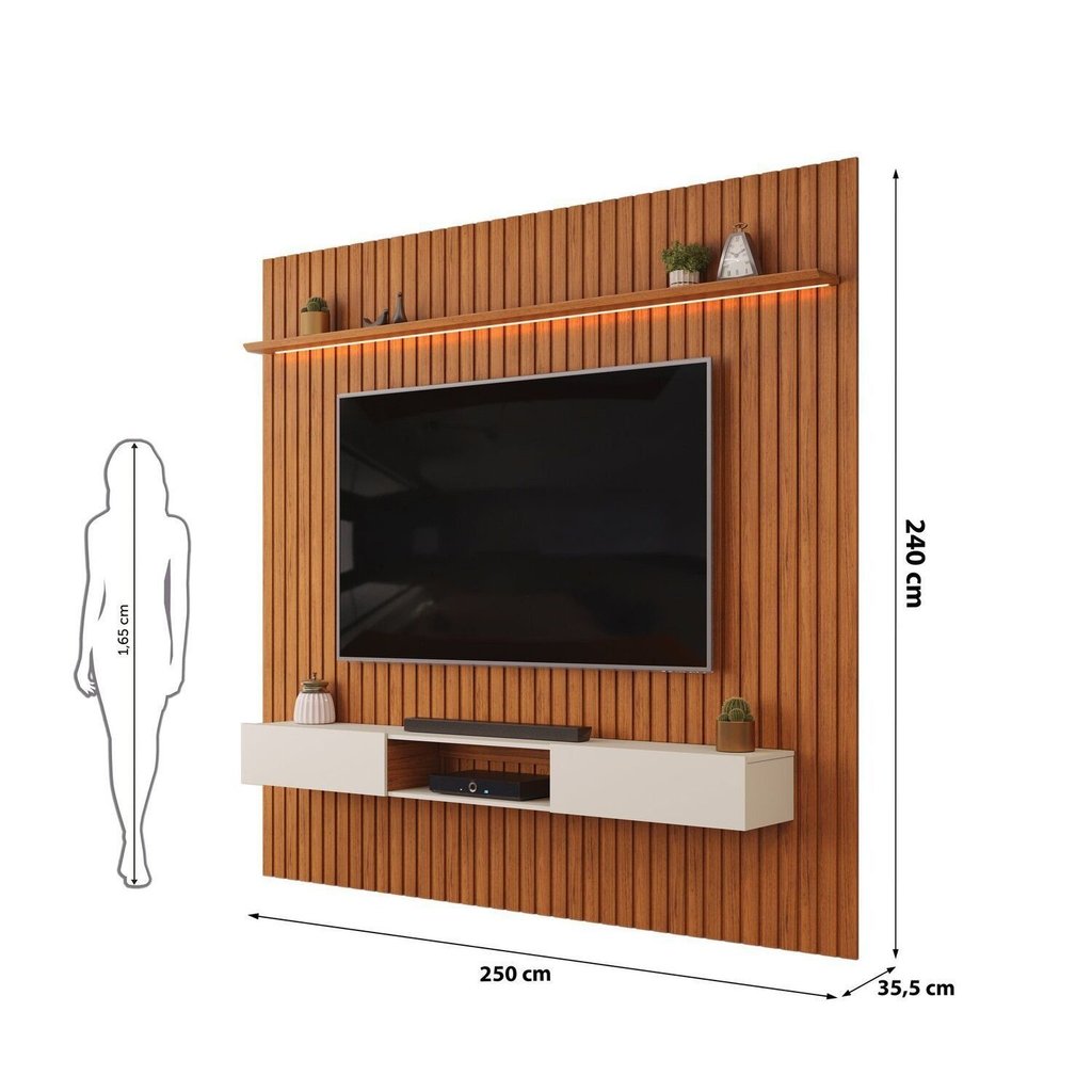Painel para Tv até 75 Polegadas Ripado com LED 250cm Trento Freijó/Off White