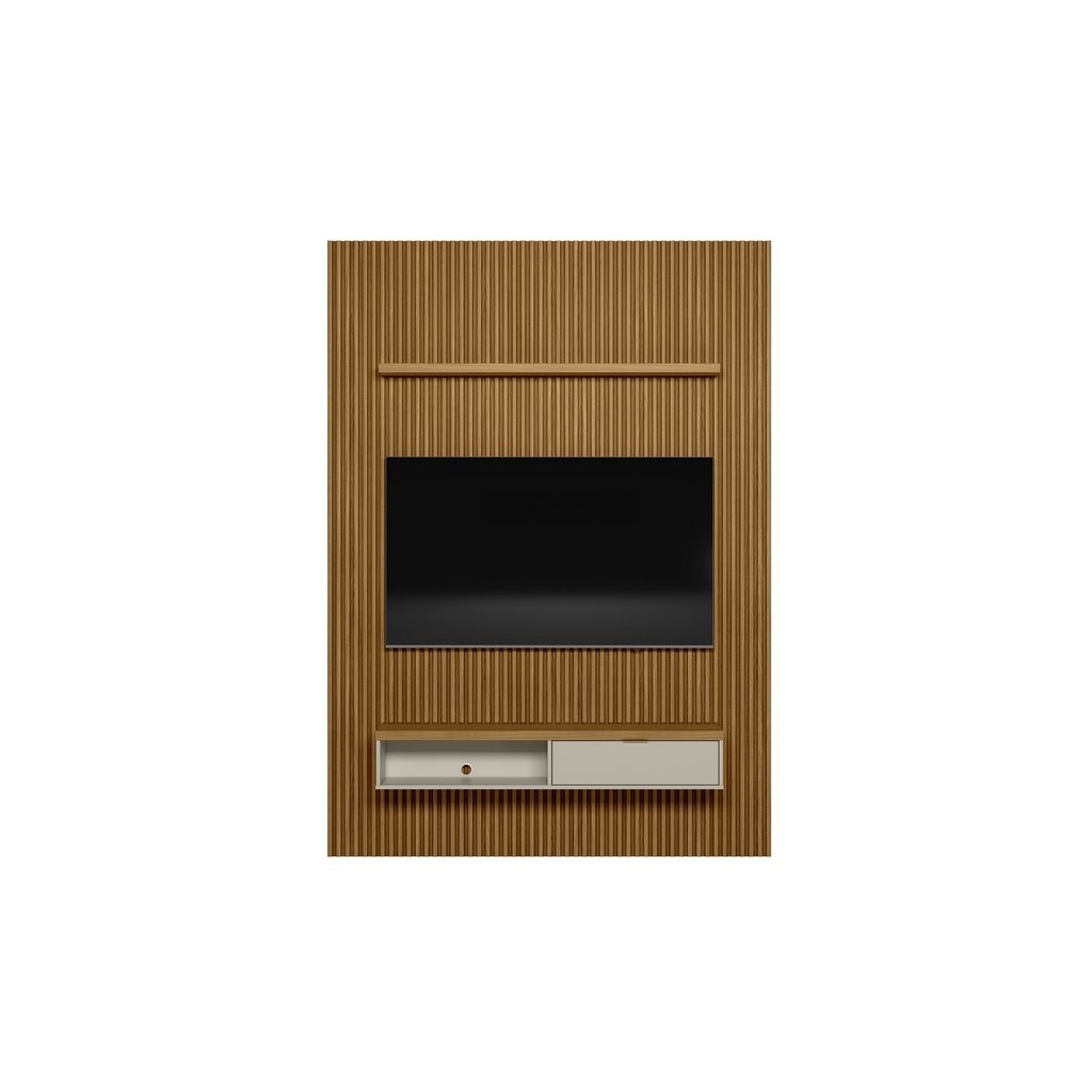 Painel para TV até 75 Polegadas Ripado Modular 1 Nicho 1 Prateleira 180cm Nature/Off White