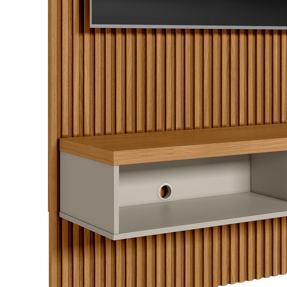 Painel para TV até 75 Polegadas Ripado Modular 140cm 1 Nicho 1 Prateleira Linea Nature/Off White