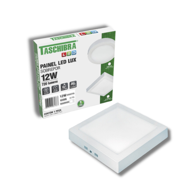 Painel Plafon Led 12w Quadrado Sobrepor Lux Taschibra