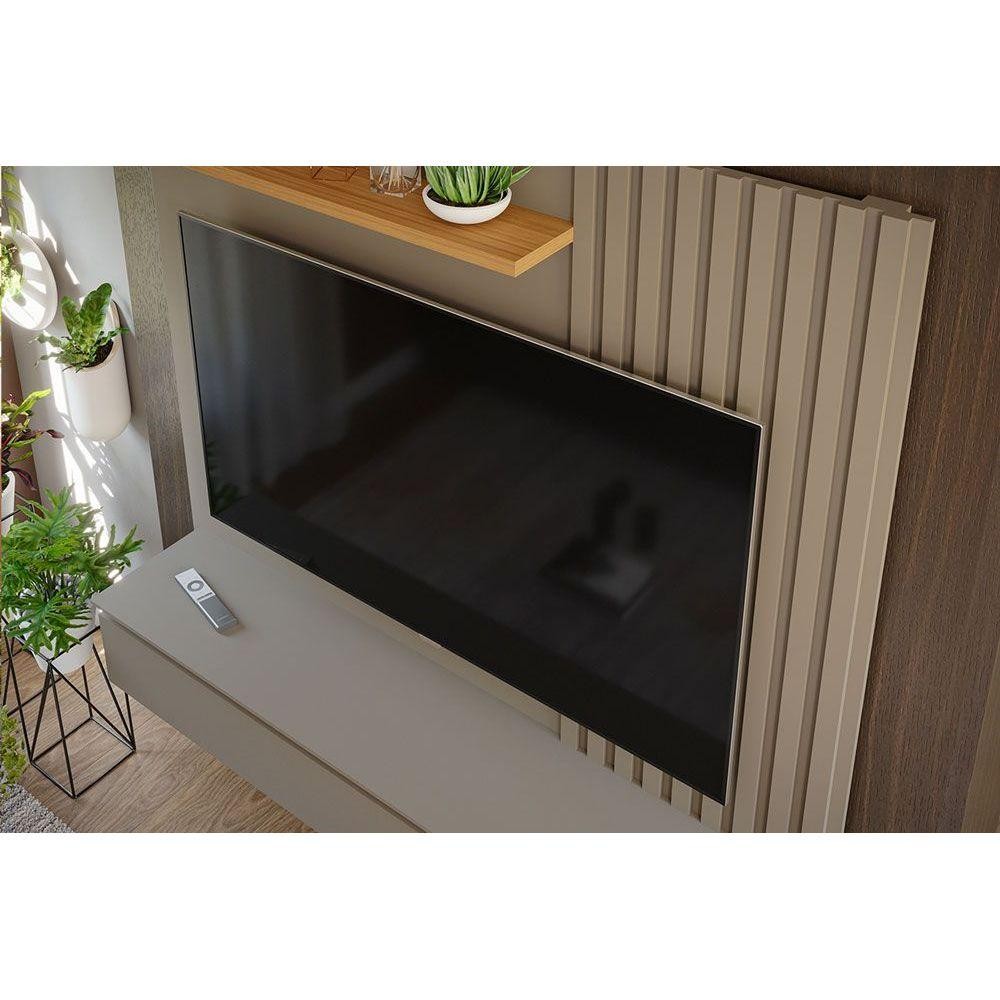Painel Quarto p/ TV até 60 Pol Panamá Plus Ripado c/ 1 Porta e Nicho 162x157cm Off White/Nature - Permóbili