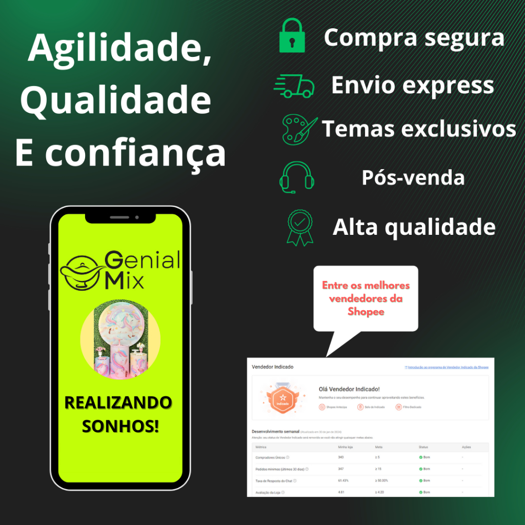 Descrição Painel Redondo Painel Redondo Para Decoração de Festa Sublimado Em Tecido com Sistema VESTE FÁCIL COM ELÁSTICO, PRÁTICO E FÁCIL DE USAR. Impressão de alta qualidade, cores vivas, imagens nítidas e ótimo acabamento. MEDIDA DO PAINEL REDONDO: >>> Tamanho Único - atende estruturas circulares de 1,20 ATÉ 1,50 de diâmetro. Se aplicando em estruturas de: 1,20/ 1,30/ 1,40 e 1,50. BENEFÍCIOS: - Arte Exclusiva. - Não amassa - tecido especial. - Não desbota, pode ser lavado quantas vezes desejar. - Instale na estrutura circular em alguns minutos. - Alta durabilidade. - Não reflete luz na hora das suas fotos. - Sem emenda. - Leve elasticidade Observações importantes: - Cor do Painel: Pode variar devido a configurações de brilho e contraste do monitor ou celular onde a imagem está sendo visualizada, também podem dar a impressão das cores serem mais ou menos vivas, mais ou menos intensas. Nosso material possui uma cor bem viva, bem vibrante. DICA DE USO: - Decorações de festas de aniversário, confraternização, eventos e festas em geral. - Para utilizar o Painel de Festa recomendamos que tenha uma estrutura/suporte redondo FICHA TÉCNICA: - Tecido Premium (Que estica e não amassa). - Tecido Leve com ótimo caimento - Elástico costurado ao redor do painel. - Acabamento em overloque evitando que o painel desfie. ITEM INCLUSO: 1 Capa de Painel Redondo em Tecido com Elástico. - OBSERVAÇÃO: Todos os nossos produtos não acompanham estrutura/suporte. **ATENÇÃO AOS PRODUTOS** - PAINÉIS COM TEXTURA GLITTER, FOLHAGEM (MURO INGLÊS) E LANTEJOULA: Todos os nossos produtos são sublimados, ou seja, estampados em tecido, sendo assim estes temas não possuem glitter, folhagem ou lantejoula de fato, produzidos em altíssima qualidade, dando um aspecto 3D imitando as texturas reais. Garantia do vendedor: 30 dias --------------------------------------------------- DÚVIDAS FREQUENTES: ACOMPANHA ESTRUTURA? Não acompanha estrutura/suporte, vendemos somente as capas em tecido, SISTEMA VESTE FÁCIL COM ELÁSTICO!!! TRABALHAM COM PERSONALIZAÇÃO? Sim, é o nosso diferencial, montamos a arte conforme cliente desejar. Para essa personalização procure por Anúncios Personalizados ou Arte do Cliente! CONSIGO PENDURAR/FIXAR DIRETO NA PAREDE? Não, como nosso painel redondo conta com acabamento em elástico, é necessário a utilização de uma estrutura própria. QUANDO É FEITO O ENVIO? Para os produtos à pronta entrega, comprando e sendo aprovado no dia (PIX, CARTÃO DE CRÉDITO ou DÉBITO) o envio já é feito no próximo dia útil. Para os personalizados pedimos o prazo de até 5 dias para produção após validação da arte, sendo aprovado (PIX, CARTÃO DE CRÉDITO ou DÉBITO) o envio já é feito no próximo dia útil. FAZEM PERSONALIZAÇÃO NAS MEDIDAS DOS MEUS PAINÉIS? Sim! Nós queremos oferecer uma melhor experiência aos nossos clientes, para essa personalização procure por Anúncios Personalizados ou Arte do Cliente! POSSUI GARANTIA? Nosso painel possui garantia contra defeito de fabricação. PRODUTO COM NOTA FISCAL? Todos os produtos acompanham de nota fiscal. *** Tem alguma dúvida antes de finalizar sua compra? Envie uma mensagem para nós que auxiliamos você! ***