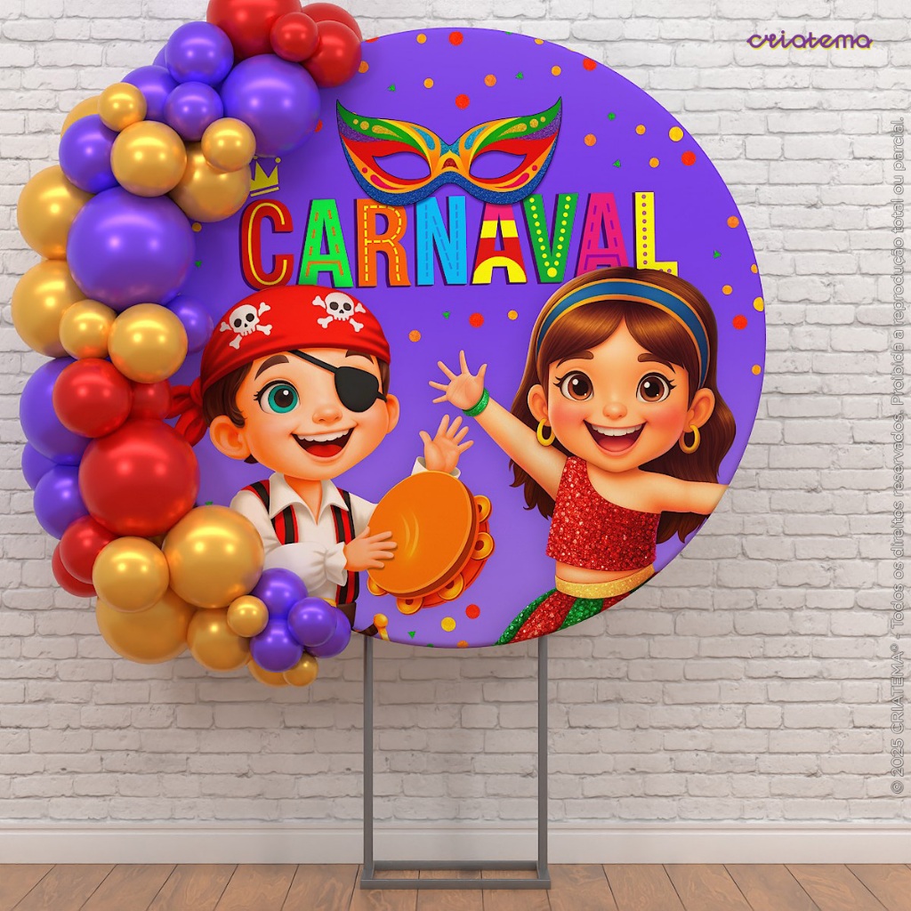 Painel Redondo Carnaval Em Tecido 1,50m Decoração de Festa Com Elástico Sublimado