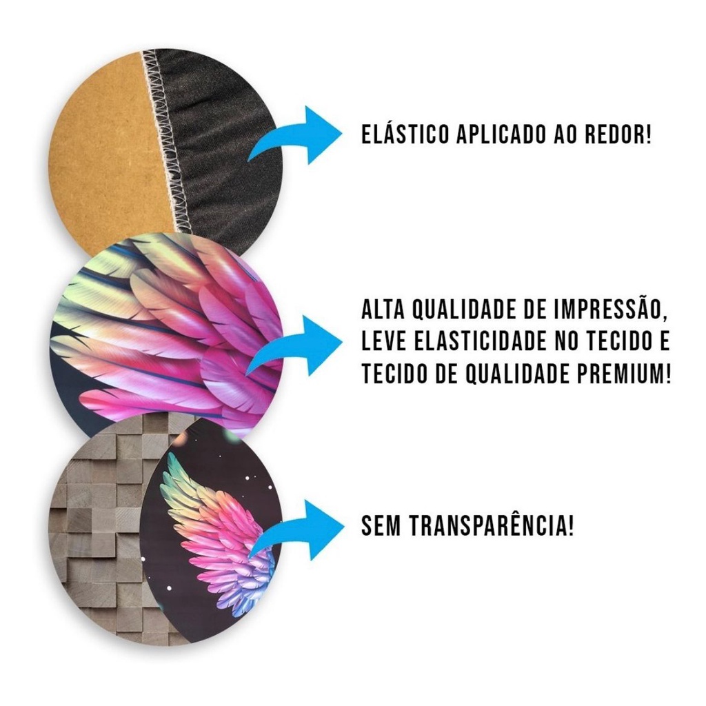 ATENÇÃO: Vendemos somente o tecido. Não acompanha a estrutura. Medidas e modelo do painel: - Modelo: redondo - Tamanho: Tecido no tamanho total de 1.58 x 1.58, ideal para ser utilizado em estruturas de até 1.50 x 1.50. Detalhes do painel: - 95% Poliéster e 5% de Elastano - Tecido: produzido em malha helanca de alta gramatura (260g por metro linear) - Acabamento em overloque evitando desfiamentos; - Painel veste fácil: elástico aplicado ao redor do painel, é só vestir Benefícios do painel sublimado Lavi Sublimação: - Não perde cor; - Seca rapidamente; - Estica e não amassa; - Altíssima durabilidade; - Possui um ótimo caimento; - Pode lavar o quanto quiser; - Fácil instalação, é só vestir; - Fácil transporte e armazenamento; - Não amassa, superior aos de lona; - Pode ser passado em temperatura média; - Você mesmo pode decorar, pronta em minutos; - Não reflete luz do flash, pois é feito em tecido; ATENÇÃO: Esse anúncio é unitário, não adquira mais de uma unidade por compra. ======================================== Os painéis são produzidos com qualidade fotográfica em impressão digital (Sublimação) de última tecnologia garantindo o melhor material. Estamos sempre atentos às novidades e tendência do mercado para lhe entregar a melhor opção de compra. Fazemos de qualquer tema, desde que a imagem esteja em alta resolução. Fazemos também até 2.94 (3.0 metros) de altura com a ausência de emendas. Solicite orçamento se precisar de outro tamanho diferente do anúncio. IMPORTANTE: A cor do produto pode variar um pouco devido as configurações da tela do seu celular ou computador. Nada que interfira na qualidade do produto. Produzido em tecido Sarjatex Acetinado 200g por m² quando o painel é produzido em máquina larga, acima de 1.5 metros de altura até 2,94 (3.0) metros de altura e em tecido malha helanca para tamanhos pequenos até 1.5 metros produzidos na máquina estreita. Nossos tecidos possuem leve elasticidade, ótimo caimento e não amassam com facilidade!