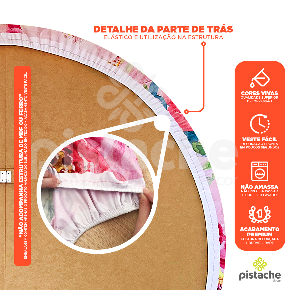 >>> PAINEL REDONDO EM TECIDO COM ACABAMENTO EM ELÁSTICO <<< UTILIZAÇÃO EM ESTRUTURAS CIRCULARES ENTRE 1,20 ATÉ 1,50 DE DIÂMETRO. >>> PAINEL NÃO POSSUI EMENDA!!! Com impressão de alta qualidade, cores vivas, imagens nítidas e acabamento perfeito, o painel redondo da Ideal é o detalhe perfeito para ter resultado incrível em sua decoração, com ótimo custo x benefício. DETALHES DO PAINEL EM TECIDO: >>> Tecido Malha New (Que estica e não amassa). >>> Tecido Leve com ótimo caimento >>> Gramatura: 140g/m de excelente qualidade. >>> Composição do Tecido: 95% Poliéster e 5% de Elastano. >>> Elástico costurado ao redor do painel. >>> Acabamento em overloque evitando que o painel desfie. PORQUE ESCOLHER O PAINEL SUBLIMADO DA CRIATEMA: >>> Melhor opção para quem procura ótimo custo x benefício >>> Não amassa (por ser feito em tecido especial. Bem melhor do que os de lona) >>> Não desbota, por ser sublimado em tecido >>> Pode ser lavado quantas vezes desejar >>> Seca rapidamente depois de molhado >>> Pode ser passado (recomendamos não usar alta temperatura) >>> Instale na estrutura circular em alguns minutos >>> Sua decoração muito mais cheia de vida >>> Alta durabilidade >>> Não reflete luz na hora das suas fotos PRAZO DE PRODUÇÃO E ENVIO: - TODOS OS PEDIDOS ACOMPANHAM NOTA FISCAL. - Os nossos painéis são produzidos e postados em até 1 DIA ÚTIL após pagamento aprovado. - Nosso painel possui garantia contra defeito de fabricação.