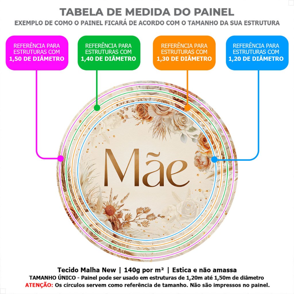 Painel Redondo Dia das Mães Com Trio Capa de Cilindro Decoração Sublimada Veste Fácil