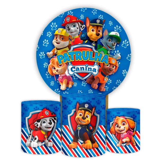 Painel Redondo Festa Infantil Aniversário Diversos Temas Capas Patrulha Canina Barbie - Sistema Veste Fácil Sublimação
