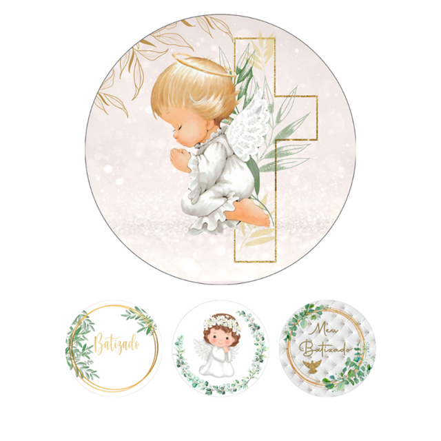 Painel Redondo Mesa Festa em Casa Tecido Sublimado Batizado 50x50