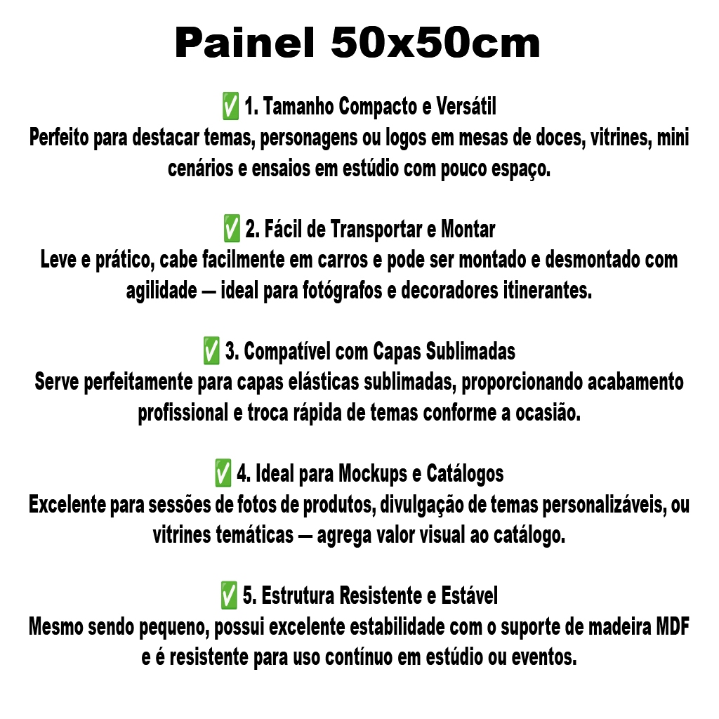 🎉 Painel Redondo em Tecido Sublimado – Deixe sua Decoração Muito Mais Encantadora! 🎉 Transforme qualquer festa ou evento em um cenário inesquecível ✨ Nosso Painel Redondo em Malha Helanca Sublimada é a escolha ideal para quem busca cores vibrantes, acabamento impecável e praticidade, elevando a decoração com um toque profissional e sofisticado. 🌈 Por que escolher este painel? ✔ Estampa em alta definição, com cores vivas e duradouras ✔ Não reflete o flash, perfeito para fotos incríveis 📸 ✔ Tecido flexível e ajustável, com elástico em toda a volta ✔ Fácil de montar, transportar e guardar ✔ Ideal para festas, aniversários, ensaios fotográficos e eventos especiais 📏 Tamanhos disponíveis: • 1,50m x 1,50m • 0,50m x 0,50m (com elástico) 🧵 Material Premium: • Tecido: Malha Helanca 100% Poliéster • Gramatura: 135g/m² • Impressão sublimada de alta qualidade • Acabamento em overlock, não desfia • Pode ser lavado e passado (temperatura adequada) ✨ Vantagens que fazem a diferença: • Não perde a cor • Secagem rápida • Alta durabilidade • Não retém água • Excelente custo-benefício 📦 Conteúdo da Embalagem: • 1 Capa de Painel Redondo em Tecido com elástico ⚠️ Atenção: • Não acompanha suporte • Pode haver leve variação de cor do monitor para o tecido 🏷️ Marca: Aline Castro Backdrops – Qualidade, beleza e confiança para sua decoração 💖 👉 Garanta já o seu e encante seus clientes ou convidados com um cenário impecável!