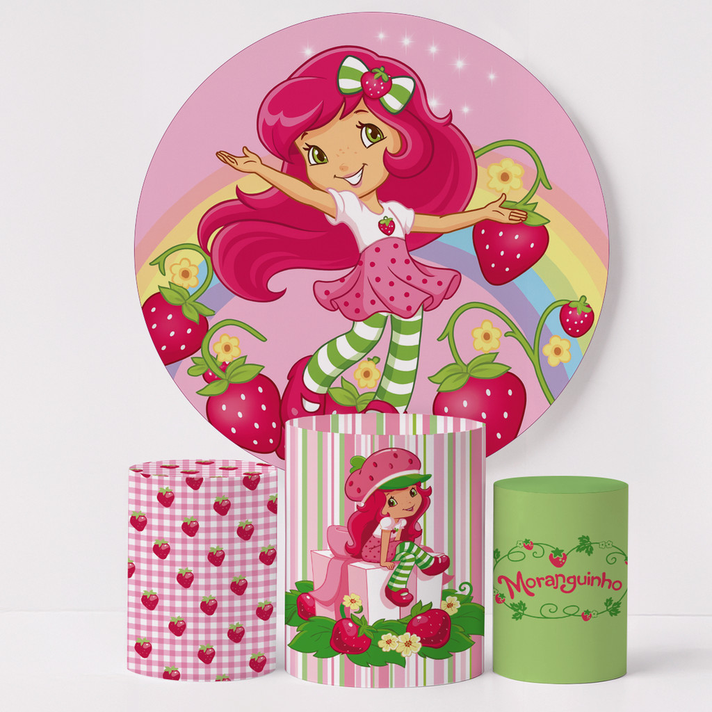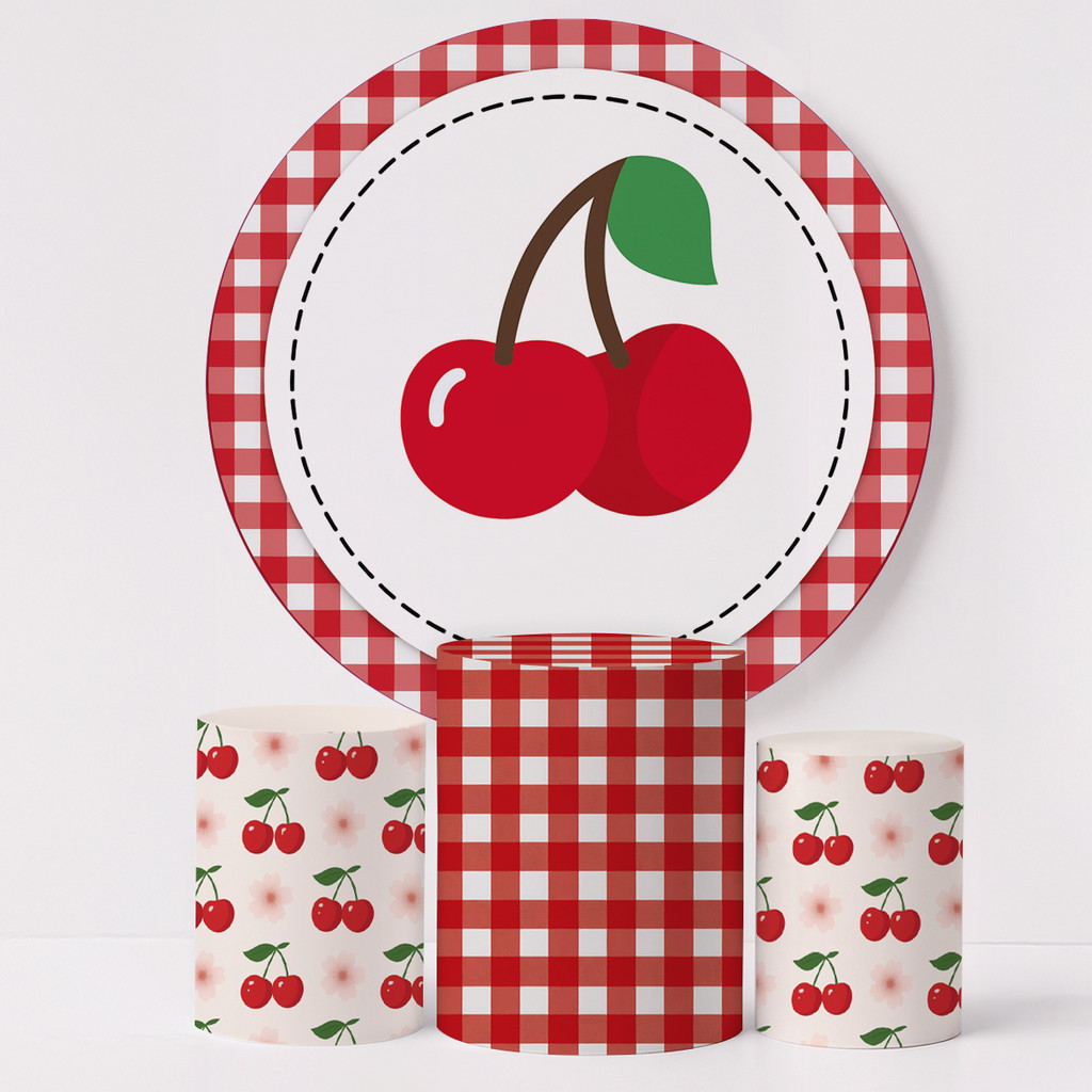 Painel Redondo Sublimado com Capas para Cilindro Kit Completo Decoração de Festa Tema Cerejas