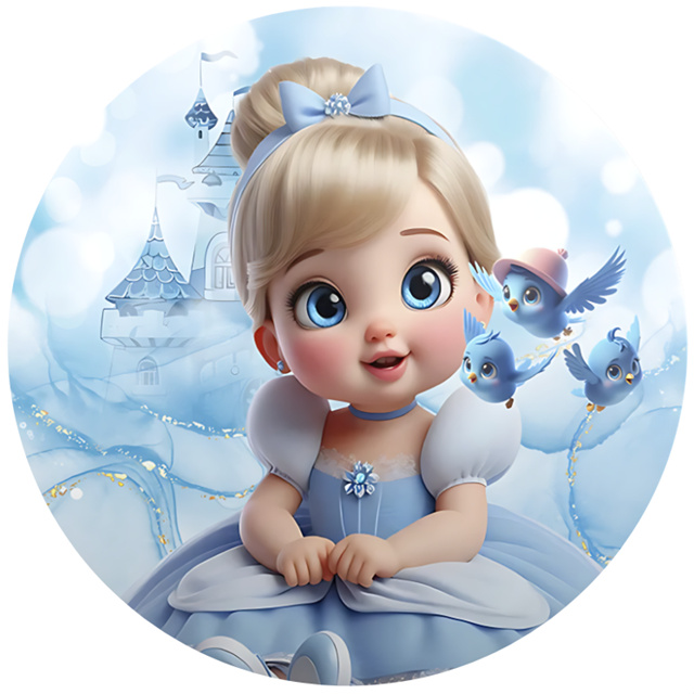 Painel Redondo Tecido Sublimado tema Cinderela Cute - PNR-4152