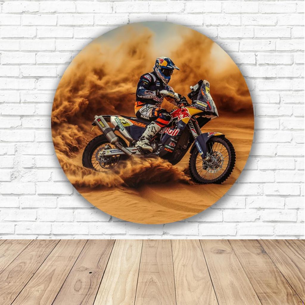 Painel Redondo Tematico MotoCross Rali Esporte Decoração Aniversario Menino Menina Evento Cenario Tecido Sublimado