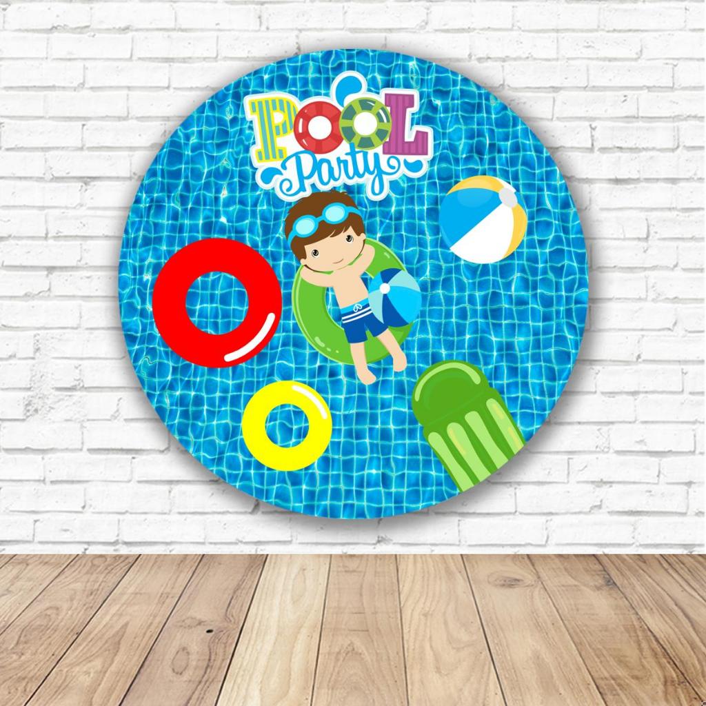 Painel Redondo Tematico Pool Party Festa Na Piscina Menina Aniversario Menino Festa Tecido Malha Sublimado Evento