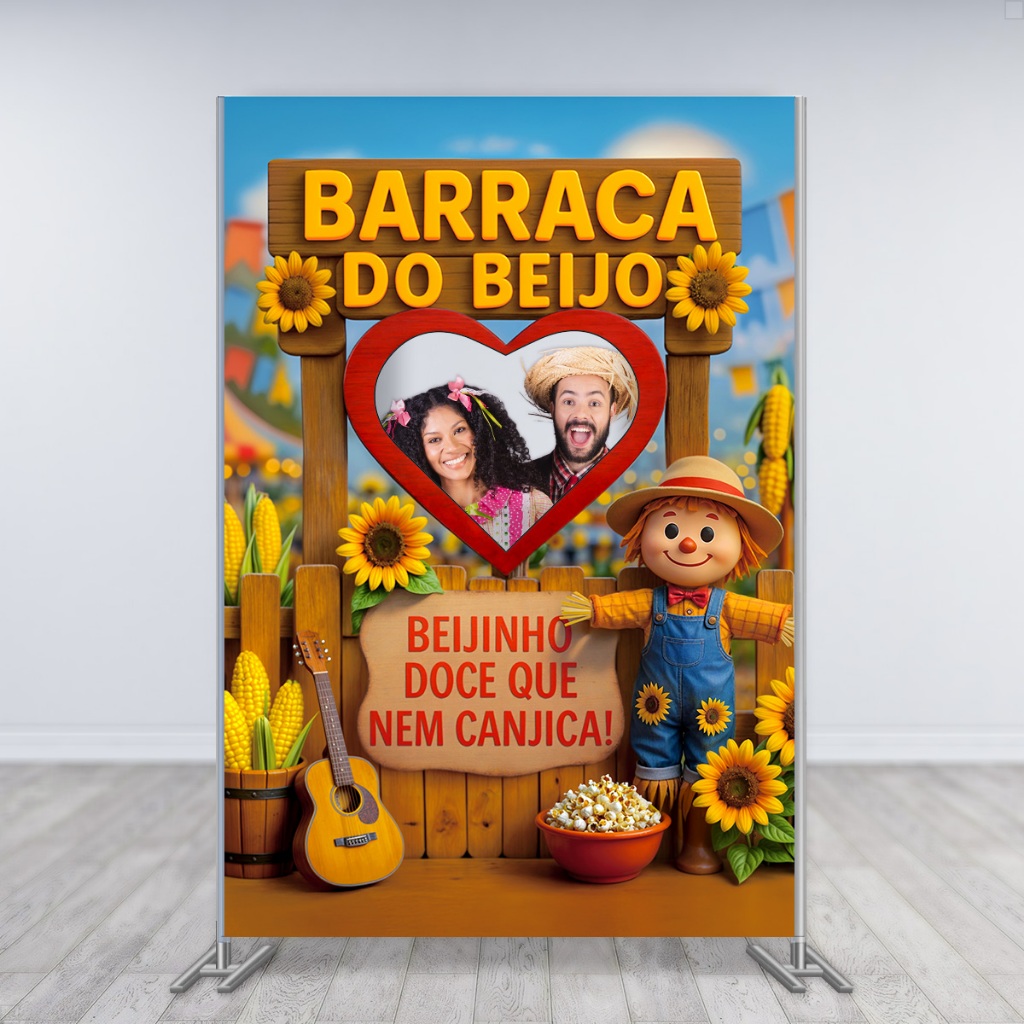 Painel Retangular Festa Junina Interativo Para Fotos Barraca do Beijo 1,50x2,20m Vazado Em Tecido Decorativo - INT-36