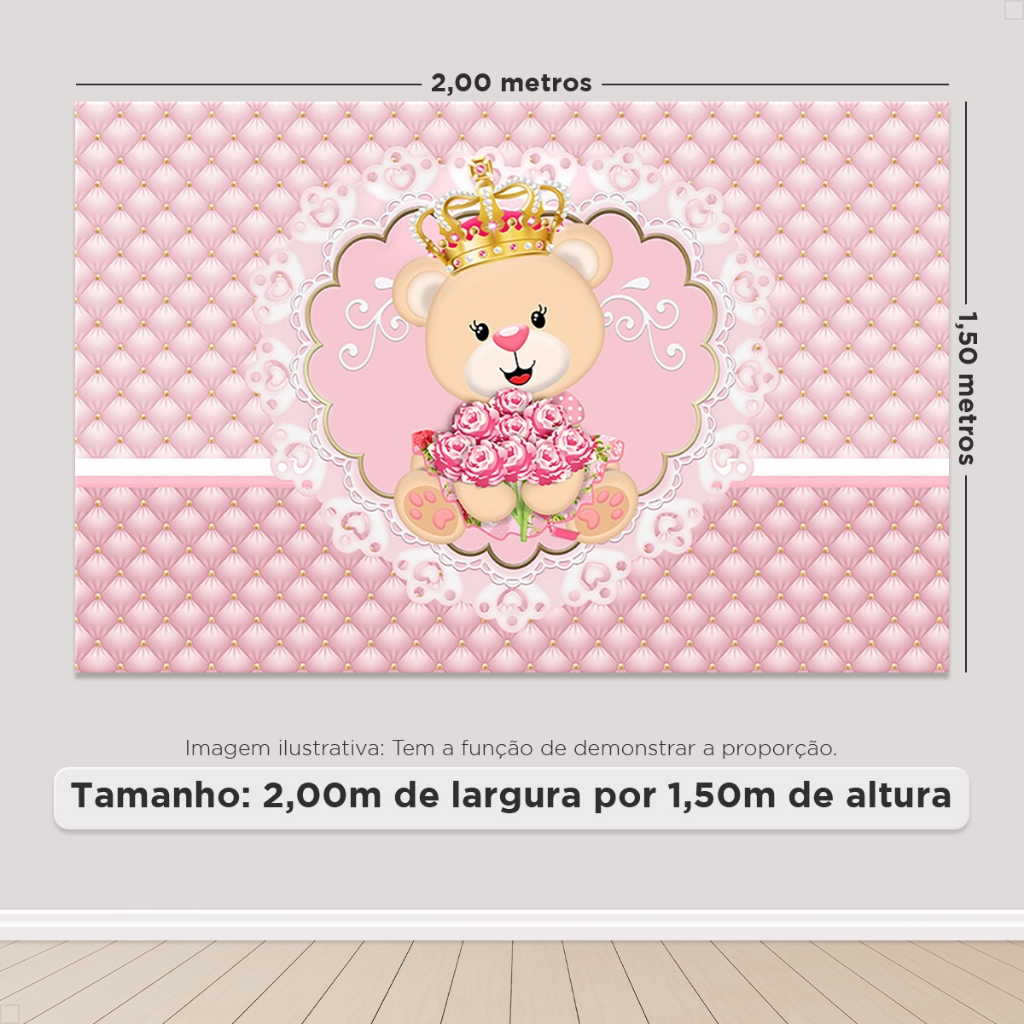 Painel Retangular Festa Ursinho Realeza Horizontal Sublimado Em Tecido - Diversos Modelos