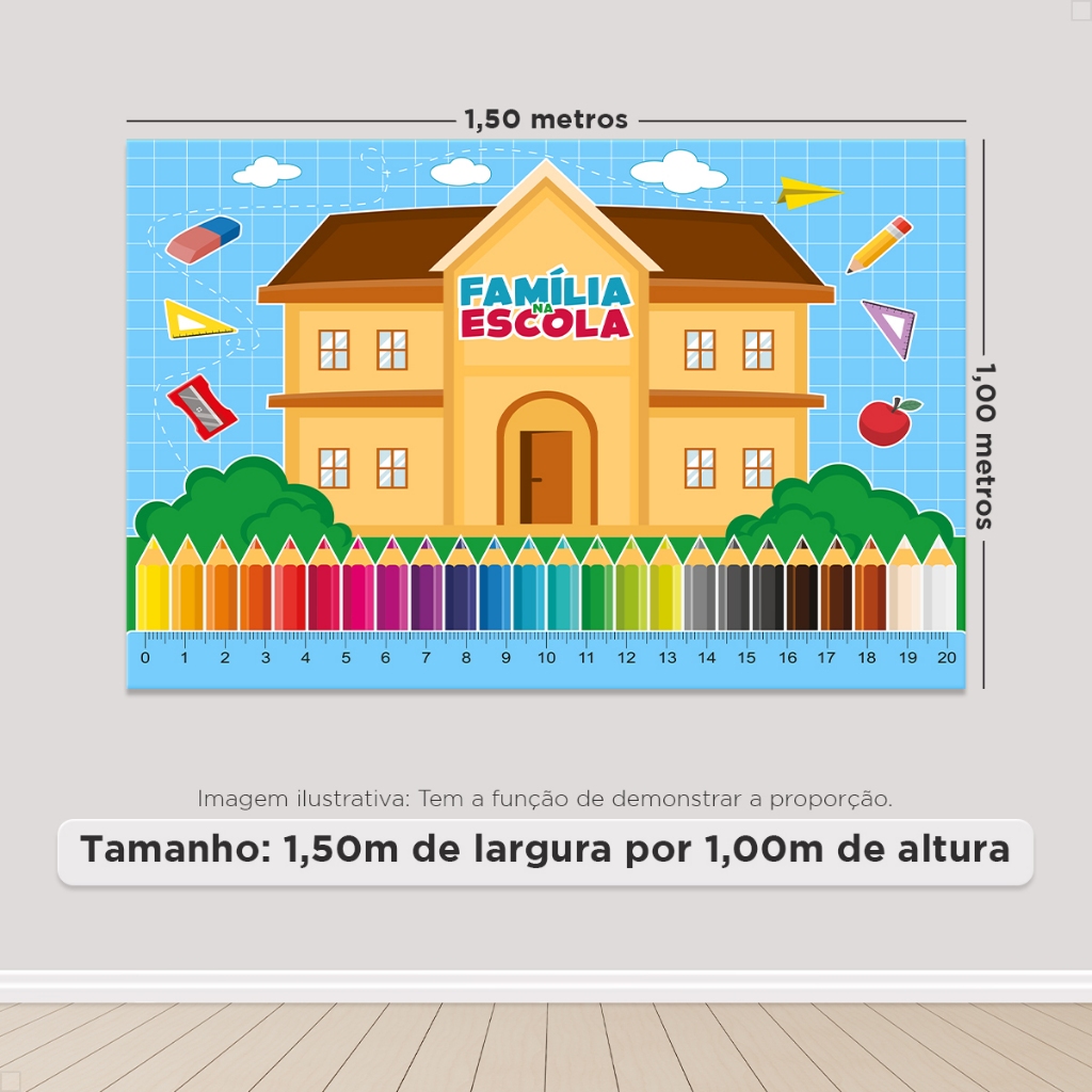 Painel Retangular Horizontal Família Na Escola Sublimado 3D Em Tecido