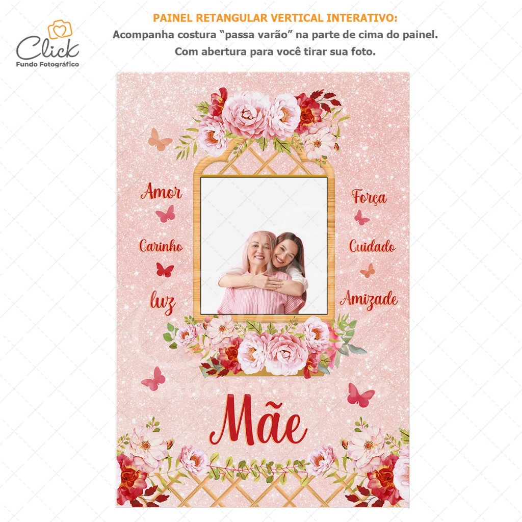 Painel Retangular Interativo Decoração Dia Das mães Lateral Vazado Sublimado Em Tecido 1,50x2,20