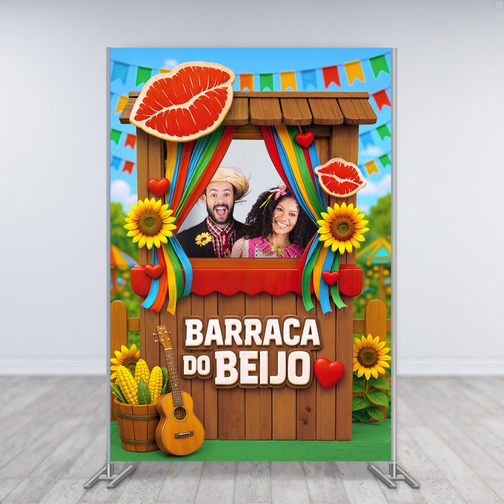 Painel Retangular Lateral Decoração Festa Junina Barraca do Beijo Interativo Vazado Sublimado Tecido 1,50x2,20m - INT-37
