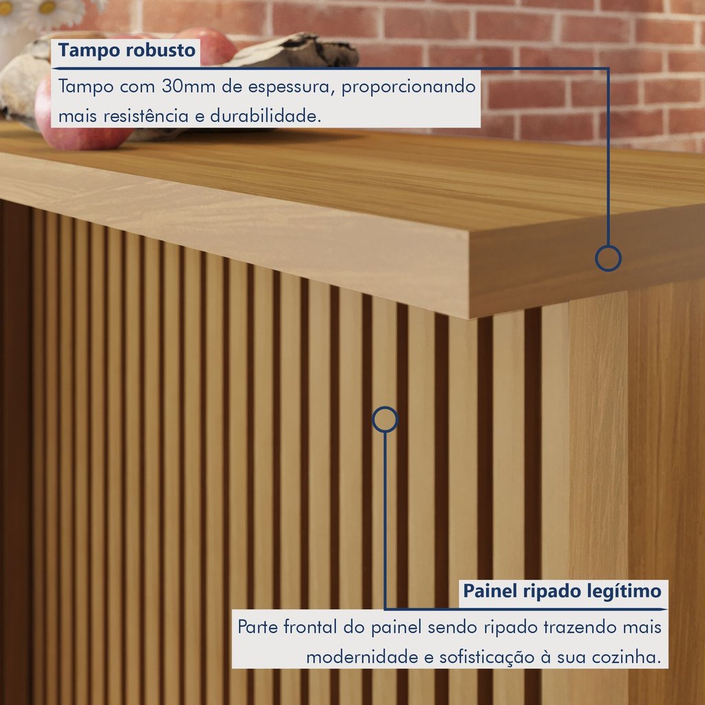 Painel Ripado Bancada Para Cozinha 120Cm 100% Mdf Freijó