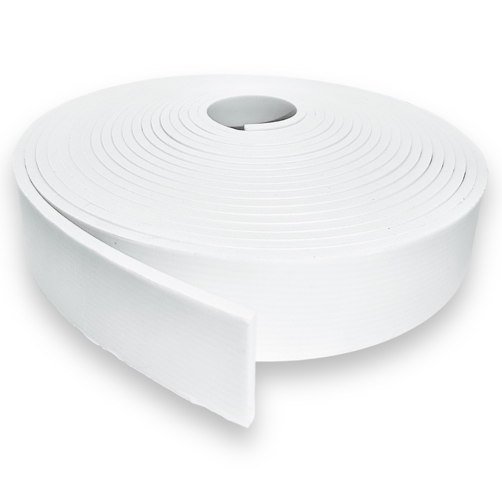 LARGURA: 5 CENTÍMETROS ESPESSURA: 5 MILÍMETROS Fita de EVA Branco com densidade 35 kg/m3 (MAÇIO). Com adesivo de alta resistência a base de Água em um lado. O Produto pode ser pintado com tinta à base de água, o uso de solventes no produto pode perder suas características. Características: Cor: Branco Espessura: 5 mm Largura: 50 mm Densidade: 35 kg/m3 Boa resistência térmica: -20°C a 100°C Temperatura de serviço de -20 ºC até 70 ºC; Isolante elétrico Resistência ao ozônio Resistência a alguns agentes químicos Ótima aderência a metais como o aço, alumínio, galvalume. Excelente poder de adesão. Vantagens e benefícios: - Painel Ripado; - Veda frestas, evitando a entrada de poeira, vento e insetos; - Elimina folgas, diminui ruídos e vibrações; - Protege pisos e outras superfícies contra riscos, marcas e impactos - Produto Autocolante (vem com fita dupla face) - Fácil Instalação (você mesmo pode instalar) - Instalação Rápida e sem sujeiras - Produto lavável e à prova de água - Não apodrece e não pega cupim - Podem ser usados em áreas internas, externas e banheiros - Não necessita de cantoneiras - Pronto para uso e pode ser pintado de acordo com seu gosto (tintas à base de água) - Limpeza fácil (apenas pano molhado + detergente ou outras soluções de limpeza)