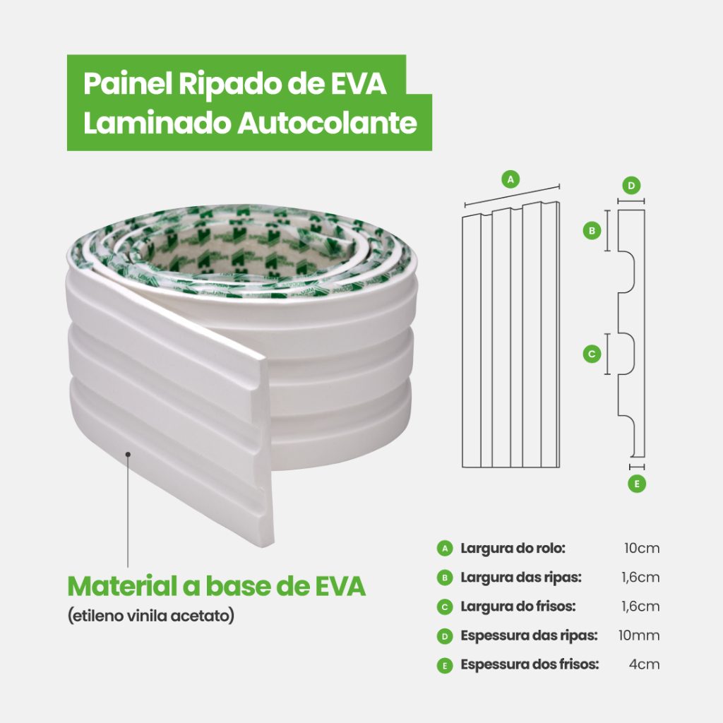 Painel Ripado em EVA Flexível Meu Rodapé Modelo PR106 | Parede, Decoração e Fácil Instalação | Envios FULL
