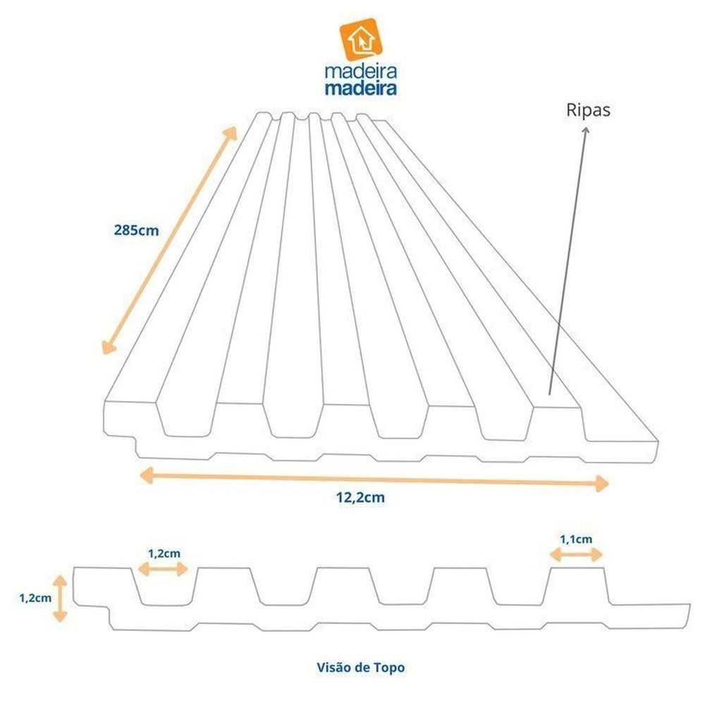 Painel Ripado em Placa 2,85x12,2 (1,96m²) Poliestireno Cumaru
