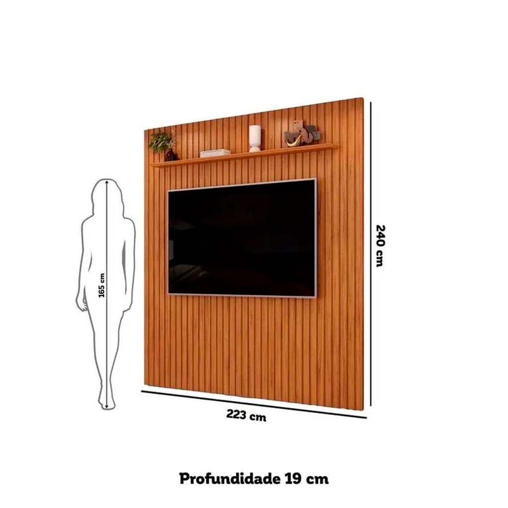 Painel Ripado para TV até 75 Polegadas 223cm 1 Prateleira Trento Freijó