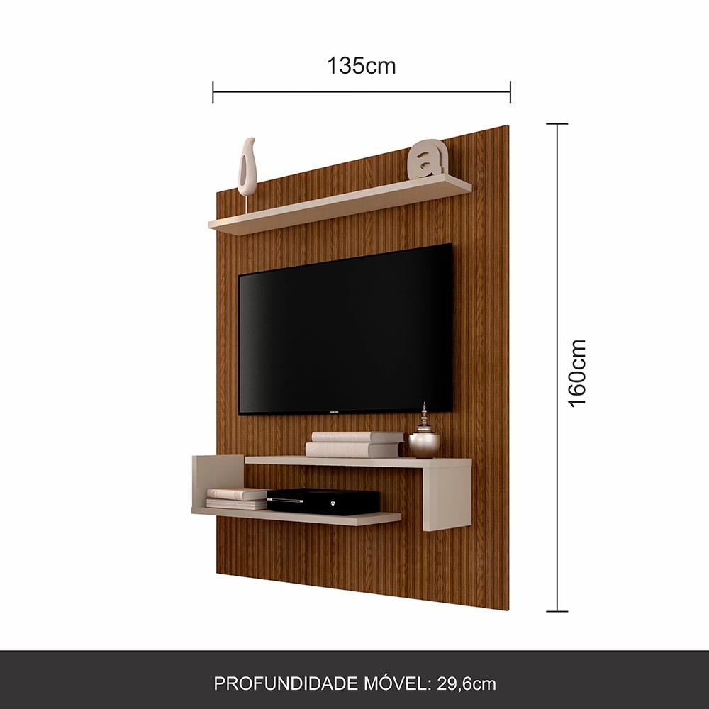 O Painel Sonora para TV até 55”, possui prateleiras para uma ótima organização e o aproveitamento de espaço com beleza e design. Medida do Painel: - Medida do painel montada: AxLxP: 160CM x 135CM x 26,4CM Detalhes Técnicos Do Painel: - PAINEL PARA TV ATÉ 55” (POLEGADAS) - Material Painel: MDP 15 E 25MM (prateleiras) - Acabamento: Pintura U.V texturizada - Peso Suportado do nicho: 15KG - Tonalidade: Off white/Freijó ripado - Fixado na Parede: Fixado com régua (MDP 15MM) - Estruturado com material de altíssima qualidade, evitando fungos e mofo. - Não utilizar suportes articulados. Conteúdo da Embalagem: - 01 Painel -Acessórios para montagem - Manual de Montagem Observações Importantes: - Imagens ambientadas meramente ilustrativas, objetos decorativos não compõe o produto; - Produto novo, garantia somente para defeitos de fabricação: 3 meses; - Não realizamos entregas em zonas rurais, via caminhos fluviais e distritos, NÃO ACEITAMOS CEP GERAL; - Não trabalhamos com entrega agendada. O recebedor deve ter mais de 18 anos. O valor do frete não inclui: subida de escada, elevador ou lançamento de produto, em condomínio residencial a entrega é feita somente até a portaria. As entregas são realizadas em dias e horários comerciais; - Ao receber o produto observe se a embalagem está em perfeita condição. Confira atentamente a quantidade de volumes; - Produto entregue desmontado. É responsabilidade do cliente a montagem/instalação do produto, inclusive despesa para sua realização. Recomendamos a contratação de um profissional especializado; - Evitar a exposição direta à luz solar e à umidade. Limpar com pano macio e seco, não utilizar produtos químicos; - A cor do produto pode variar de acordo com o monitor, a iluminação do ambiente ou sua percepção visual.