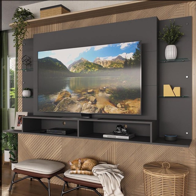 O Painel TV 60" com prateleiras de vidro Nairóbi Multimóveis é uma escolha inteligente e super em conta para deixar o seu ambiente bonito e organizado. Produzido em MDP com acabamento acetinado (cerca de 20% de brilho), que garante maior durabilidade, resistência e facilidade na limpeza, possui painel para TV de até 60” (suporta até 28 Kg) com espaçamento para a passagem dos fios, o que deixa um visual clean e os cabos organizados. Possui 4 prateleiras em vidro, que deixam o móvel mais requintado e 2 nichos para acomodar os equipamentos eletrônicos. Prático e moderno para deixar sua sala de estar confortável para aproveitar o aconchego do seu lar. Conteúdo da Embalagem: 1 (um) Painel para TV 1 (um) Kit com 4 prateleiras de vidro Kit ferragem Manual de montagem Dimensões do produto montado: Altura: 108 cm | Largura: 191 cm | Profundidade: 31,5 cm Tamanho Painel TV: 136 x 90cm *Devido as variações de tamanho dos televisores no mercado, sugerimos que verifique as medidas da sua TV e compare com o painel antes de efetuar a compra. *Não recomendamos utilizar suporte de TV articulado. *Você pode consultar as medidas detalhadas na imagem técnica do produto. *As cores do produto podem sofrer variações de tonalidade de acordo com as configurações do seu dispositivo. Imagem meramente ilustrativa. Decoração e eletros não acompanham o produto. O produto será entregue desmontado e não disponibilizamos o serviço de montagem.