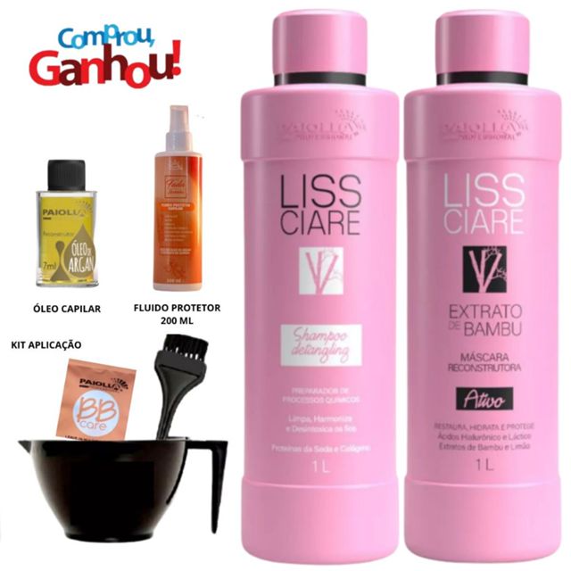 Paiolla Bambu Liss Ciare 2x1 Litro + Fluido Protetor Capilar 200ml + Kit aplicação + Oleo capilar