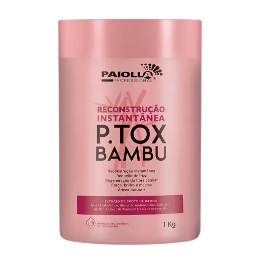 Paiolla P.tox Bambu 1 Kg (Reconstrução Instantânea) e Shampoo Paiolla Antiresíduos 1 Litro Transforme a experiência do seu cabelo com a Reconstrução Instantânea P.Tox Bambu de Paiolla Cosméticos. Este tratamento inovador é ideal para todos os tipos de cabelo, proporcionando uma regeneração da fibra capilar que resulta em força, brilho e maciez. Sua fórmula única atua na redução de frizz, permitindo que os fios fiquem mais disciplinados e saudáveis. O produto vem em uma embalagem de 1 kg de máscara e 1 litro de shampoo, garantindo uma aplicação prolongada e resultados visíveis desde a primeira utilização. Com ingredientes cuidadosamente selecionados, a linha P.Tox Bambu nutre intensamente e revitaliza os cabelos, promovendo uma sensação de leveza e suavidade. Experimente a combinação perfeita entre a máscara e o shampoo, que juntos potencializam os efeitos do tratamento. Ideal para quem busca cuidados intensivos e eficientes, esta linha proporciona resultados que encantam, elevando a autoestima e trazendo de volta a vitalidade dos fios. O PTOX age diretamente no rejuvenescimento dos cabelos. Sua fórmula exclusiva desenvolvida com um poderoso blend de aminoácidos, Extrato de Broto de Bambu e Óleo de Coco atua de dentro para fora dos fios, repondo a massa capilar, a força e a saúde da fibra. O efeito nos cabelos é imediato, reduz o volume, elimina o ressecamento, restaura as pontas ásperas e proporciona aos cabelos brilho, sedosidade e maciez. Seus ativos de tratamentos, como a Proteína do Trigo e Proteína do Milho devolvem a vitalidade e o movimento natural ao cabelo. Marca - Paiolla Linha - P.tox - btox Produto - Paiolla P.tox Bambu 1 Kg (Reconstrução Instantânea) Tipo - Transformação