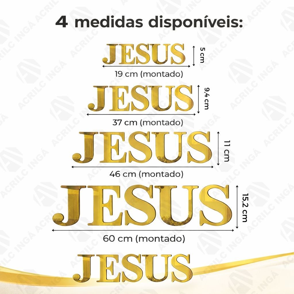 | Palavra Decorativa Jesus em Acrílico Espelhado este produto | R$ 16,49 | 53% | 4.8/5 | 129 |