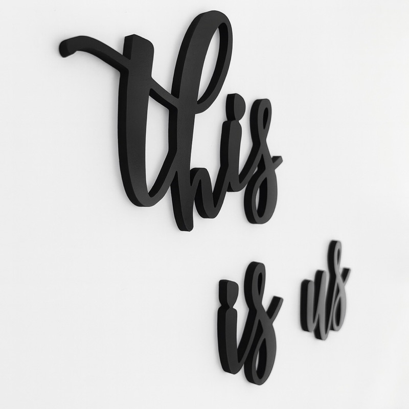 Palavras Decorativas “This Is Us” MDF Preto com Fita Dupla Face | Parede com Fotos da Família