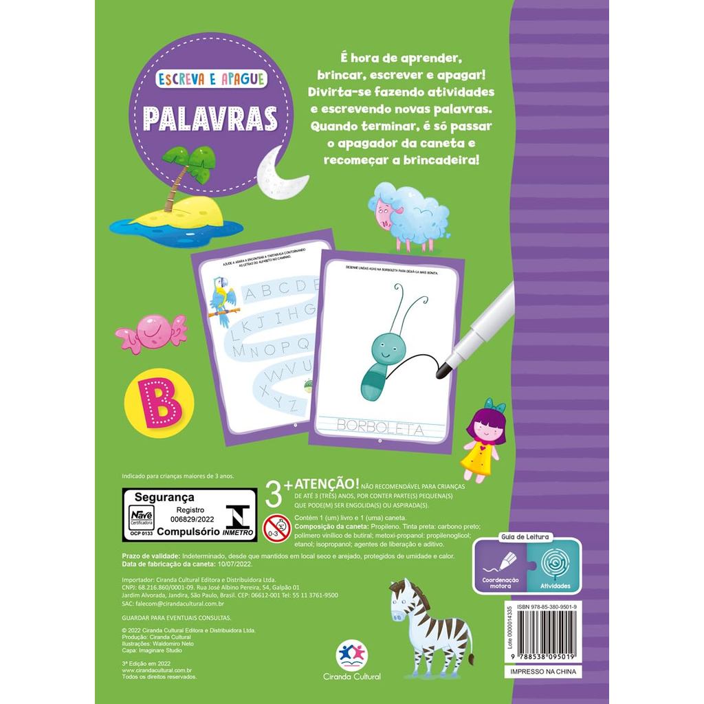 É hora de aprender, brincar, escrever e apagar! Divirta-se fazendo atividades e escrevendo novas palavras. Quando terminar, é só passar um pano e recomeçar a brincadeira! É hora de aprender, brincar, escrever e apagar! Divirta-se fazendo atividades e escrevendo novas palavras. Quando terminar, é só passar um pano e recomeçar a brincadeira! 20x26cm14 páginas