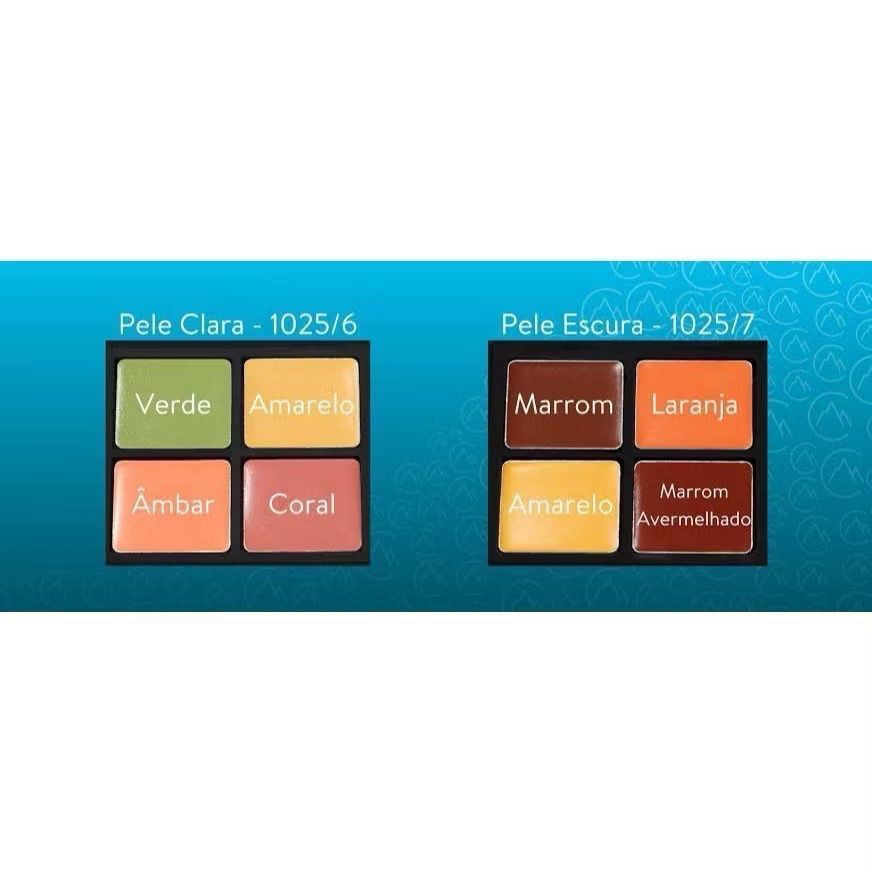 Essa solução inovadora foi desenvolvida para neutralizar imperfeições de diferentes tonalidades, como manchas avermelhadas, amarronzadas, esbranquiçadas e azuladas. É a escolha perfeita para alcançar uma maquiagem impecável, utilizando um produto nacional de alta qualidade e performance. Com sua textura cremosa e de fácil aplicação, o produto permite camadas que proporcionam uma cobertura uniforme e natural. Ele deve ser usado antes do corretivo, garantindo um acabamento impecável e profissional. Além disso, a alta qualidade e performance do Kit Corretivo Camuflagem fazem dele a escolha perfeita. Claro: Verde: Para manchas avermelhadas; Amarelo: Para manchas arroxeadas; Coral: Para manchas azuladas; Âmbar: Para vitiligo e manchas esverdeadas. Escuro: Marrom quente escuro: Para ajustar os tons de produtos de pele; Alaranjado puro: Para camuflar manchas azuladas e escuras (melasmas); Amarelo puro: Para camuflar manchas arroxeadas (olheiras); Marrom avermelhado: Para ajustar os tons de produtos de pele e blushes.