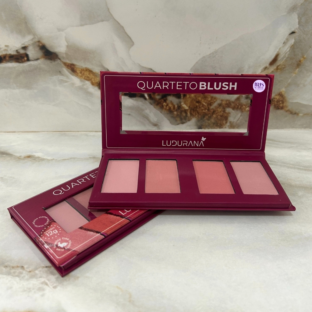 🌸 Descubra o Quarteto de Blush da Ludurana! 🌸 Aposte no toque de cor perfeito para seu rosto com o Quarteto de Blush da Ludurana! São 4 tons incríveis que garantem um efeito natural e radiante, ideal para realçar todos os tipos de pele. Com ótima pigmentação e acabamento impecável, você vai conquistar um look fresco e saudável para qualquer ocasião. Transforme sua maquiagem com o Quarteto de Blush Ludurana e arrase em cada detalhe! 💕