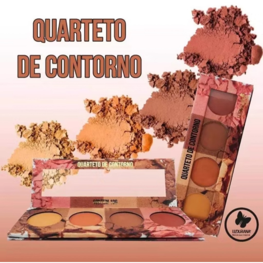 udurana LANÇAMENTO! Chegou o nosso novo QUARTETO DE CONTORNO Aqui é uma novidade atrás da outra! O nosso Quarteto de Contorno contém 4 cores lindas que se adaptam aos mais diversos tons de pele, ele possui excelente durabilidade, alta pigmentação e sua textura em pó promove efeito natural que permite esfumar com facilidade, sem marcar nadinha, proporcionando aquela finalização impecável na make LUDURANA akeup QUARTETO DE CONTORNO MODO DE USAR Aplicar uniformemente sobre o rosto com auxilio de esponja ou pincel. COMPOSIÇÃO: ALUMINUM STARCH OCTENYL SUCCINATE, CALCIUM CARBONATE CYCLOPENTASILOXANE, DIMETHICONE, HYDROGENATED POLYISOBUTENE, HYDROLYZED COLLAGEN, ISOPROPYL MYRISTATE MAGNESIUM STEARATE, PARAFFINUM LIQUIDUM, PARFUM, PHENYL TRIMETHICONE, PROPYLPA RABEN TALC TOCOPHERYL ACETATE, CI 77891 CI 77491, CI 77492, CI 77499. PRECAUÇÕES: Somente para uso externo, Manter fora do