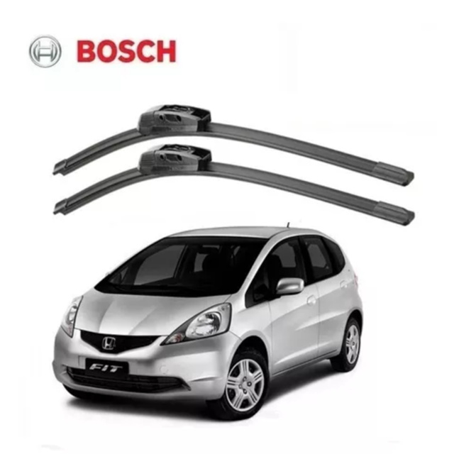 JOGO DE PALHETA AEROFIT BOSCH 01 - Palheta Bosch lado motorista 24" / 66cm 01 - Palheta Bosch lado passageiro 16" / 40,6cm CARACTERÍSTICAS: - Inovação e tecnologia de equipamento original, para aplicações com conexão especial - Nova borracha com Power Protection Plus, para uma limpeza suave e silenciosa - Lâmina de aço pré-tensionada Evodium, perfeita adaptação ao para-brisa - Produto novo com aplicações Originais - Estrutura robusta para desempenho durável em qualquer clima - Instalação rápida e fácil APLICAÇÃO: - HONDA FIT 2003 até 2008 ENCAIXE: - Tipo gancho