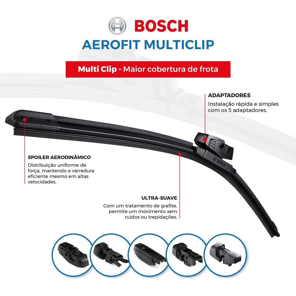 Par de Palhetas Dianteiras Limpador Parabrisa Multiclip BOSCH Original 01 - Palheta Bosch lado motorista 01 - Palheta Bosch lado passageiro Compatível com os 2 veículos: NA OPÇÃO COR SELECIONE ENTRE: - GM ONIX 2019 A 2024 Instalação (N2) - GM PRISMA 2019 A 2024 Instalação (N2) (ATENÇÃO: ENVIAMOS COM O ADAPTADOR MONTADO, PALHETAS PRONTAS PARA INSTALAR NO VEICULO!) Veja o VIDEO de Instalação do anuncio (Não disponível através do APP Mercado Livre) Esta oferta tem mais de uma opção de carros no mesmo anuncio. Na opção de (COR) disponibilizamos o nome e ano dos veículos compatíveis. É IMPORTANTE escolher CORRETAMENTE, conforme ano e modelo do seu veículo. Quando fizer a escolha do veículo correspondente será mostrada a foto, assim como ano e modelo. Alta Performance e Segurança Garantidas com Palhetas BOSCH Experimente o melhor em eficiência, segurança e durabilidade com as palhetas BOSCH Aerofit Multiclip. Projetadas para proporcionar uma visibilidade clara em todas as condições climáticas, estas palhetas oferecem um desempenho superior que você pode confiar. Especificações: Kit composto por 1 Palheta Multiclip lado direito e 1 Palheta Multiclip lado esquerdo BOSCH Aerofit Original. Até 5 adaptadores inclusos para fácil instalação em diversos modelos de veículos. Livre de partes metálicas expostas, evitando desgaste de pintura e corrosão. Spoiler aerodinâmico para distribuição uniforme de força e estabilidade em altas velocidades. Funcionamento ultra suave com tratamento de grafite, sem ruídos ou trepidações. Embalagem moderna e atrativa. Compatível com os seguintes modelos: Perguntas Frequentes: Quando devo trocar as Palhetas do meu carro? Troque ao primeiro sinal de desgaste para manter a visibilidade ideal. Quais os sinais de desgaste da palheta? Barulhos durante o uso, falhas na limpeza do para-brisa, entre outros. Qual o prazo para a substituição das Palhetas? Recomenda-se trocar anualmente para garantir a eficiência. Nota: As Palhetas BOSCH são originais, adquira com confiança e acompanhe com Nota Fiscal. Em caso de dúvidas sobre o modelo correto, pergunte abaixo. Garanta a segurança da sua família. Compre Palhetas Originais BOSCH Aerofit. Esse anúncio revisado foca em destacar os benefícios do produto, fornece informações claras sobre a compatibilidade com diferentes modelos de veículos e responde às perguntas frequentes dos potenciais compradores.