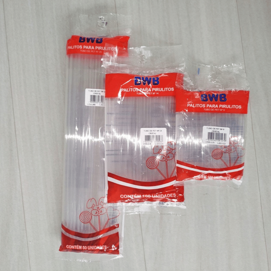 Palito Canudo Para Pirulito Tubo Pet Topo de Bolo 9cm, 14cm e 28cm - BWB