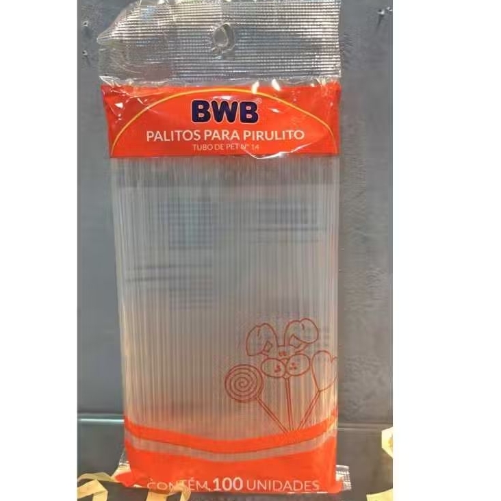 Palito para pirulito BWB transparente- topo de bolo- tubo pet - canudo transparente 9/14/28 cm