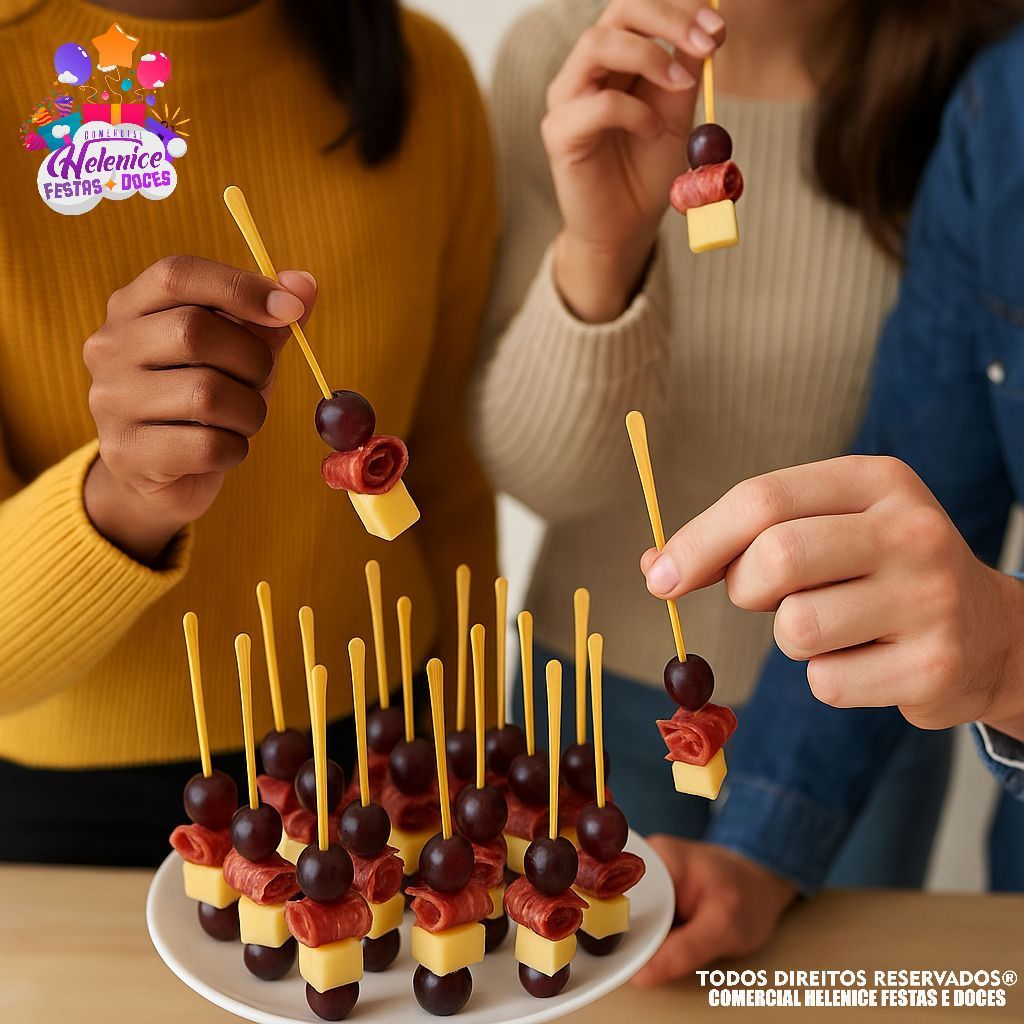 Palito para Sanduíche em Madeira – Pacote com 500 Unidades | Ideal para Finger Foods, Petiscos e Eventos O Palito para Sanduíche é a escolha ideal para quem busca praticidade, higiene e charme na hora de servir. Fabricado em madeira resistente, é perfeito para montar petiscos, mini sanduíches e finger foods com elegância, dispensando o uso de talheres e facilitando a interação entre os convidados. Destaques do Produto: - Pacote com 500 unidades - Fabricado em madeira natural, resistente e descartável - Ideal para petiscos, canapés, mini lanches e eventos - Excelente para festas, buffets, food trucks, recepções e catering - Solução prática e higiênica para servir com estilo e organização - Tamanho aproximado por palito: padrão de palitos para sanduíche (se precisar de medida exata, posso incluir) Transforme a apresentação dos seus alimentos com um toque de praticidade e sofisticação!