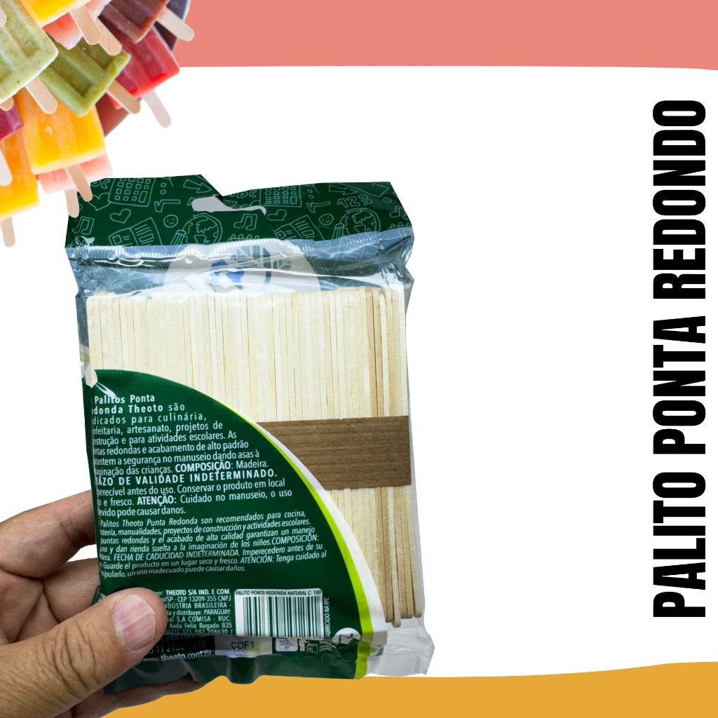 Descrição do produto Palito de Sorvete Theoto - 100 Unidades Descrição do Produto: Os Palitos de Sorvete Theoto são ideais para diversos usos, desde a produção de sorvetes artesanais até projetos criativos e educativos. Feitos com madeira de reflorestamento, são seguros e perfeitos para trabalhos manuais, como artesanato pré-escolar, ajudando no desenvolvimento da criatividade das crianças. Características: Material sustentável: Madeira de reflorestamento Versatilidade: Ideal para sorvetes, picolés, artesanato e atividades escolares Acabamento seguro: Pontas arredondadas para um manuseio confortável Superfície lisa: Facilita a pintura, colagem e personalização Especificações Técnicas: Formato: Palito de sorvete com ponta arredondada Quantidade: 100 unidades por embalagem Dimensão: Padrão para palitos de sorvete Aplicações: Artesanato: Construção de maquetes, enfeites e brinquedos educativos Culinária: Perfeito para fabricação de sorvetes e picolés caseiros Atividades escolares: Estimula a coordenação motora e a criatividade Atenção: Não recomendado para crianças menores de 3 anos sem supervisão de um adulto. EQUIPE LUIZYUJISATON