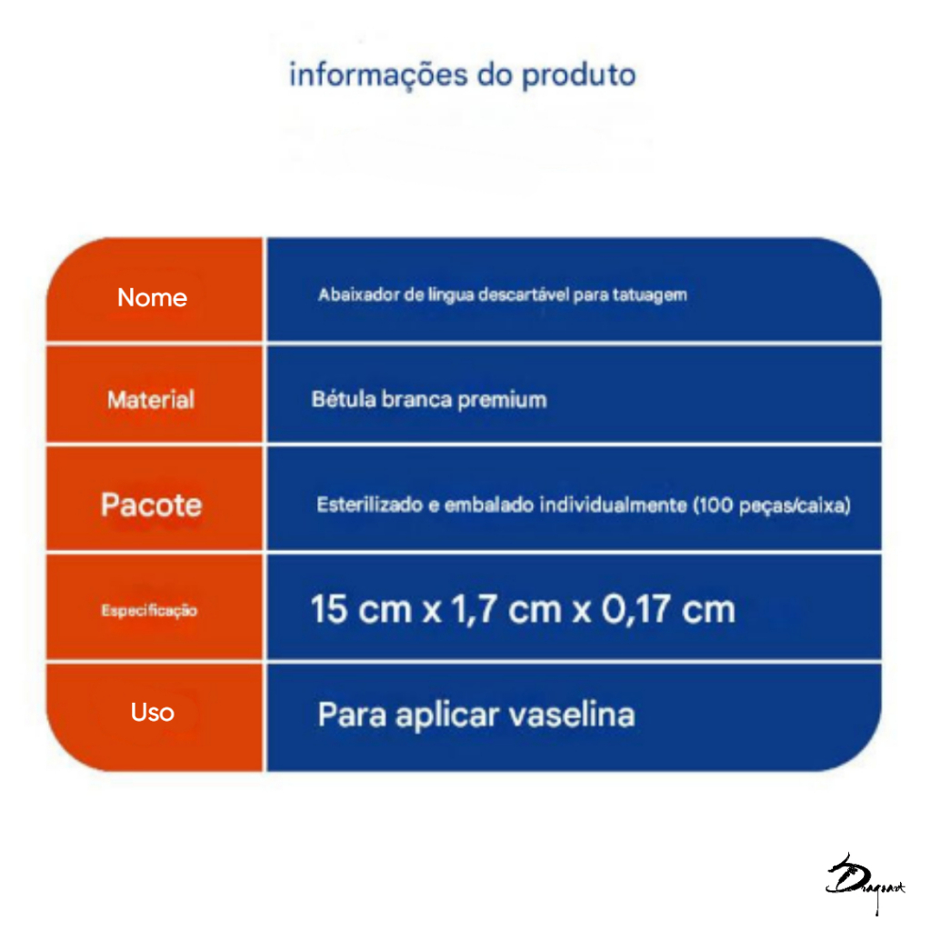 Palitos Descartáveis Para Vaselina De Tatuagem 100 UNIDADES Madeira 15x2cm Dragoart
