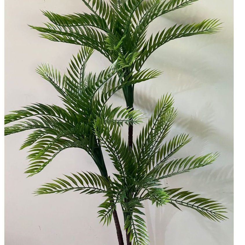 Palmeira Artificial 704 (SEM VASO) (Menor, 1 metro e 10 centímetros) 🟣 Com 3 hastes Altura total: 1 metro e 10 centímetros 1 Haste de 60 centímetros com 11 folhas 1 Haste de 75 centímetros com 11 folhas 1 haste de 90 centímetros com 11 folhas Cada folha medindo 40 centímetros Material: Silicone A cor é padrão, folhas verde com hastes marrom 📌As fotos do anúncio são fotos tiradas por nós, as imagens são reais do produto que será enviado. 📌Pode ficar exposto no sol e na chuva 🟣Palmeira Artificial 705 (Maior, 1 metro e 50 centímetros) Com 3 hastes Altura total: 1 metro e 50 centímetros 1 Haste de 87 centímetros com 16 folhas 1 Haste de 1 metro e 15 centímetros com 16 folhas 1 haste de 1 metro e 37 centímetros com 16 folhas Cada folha medindo 40 centímetros 🟣Palmeira Artificial (1 metro e 30 centímetros) Com 21 folhas e 21 hastes Altura total: 1 metro e 30 centímetros 3 Hastes de 50 centímetros 3 Hastes de 70 centímetros 3 Hastes de 77 centímetros 6 Hastes de 90 centímetros 3 Hastes de 1 metro 3 Hastes de 1 metros e 10 centímetros Cada folha medindo 36 centímetros Palmeira Artificial com 21 Folhas Ref: CC810 Material: Silicone 📌A cor é padrão, folhas verde com hastes marrom 📌As fotos do anúncio são fotos tiradas por nós, as imagens são reais do produto que será enviado. 📌Pode ficar exposto no sol e na chuva 📌Será enviada com a parte das folhas dobradas por causa do tamanho