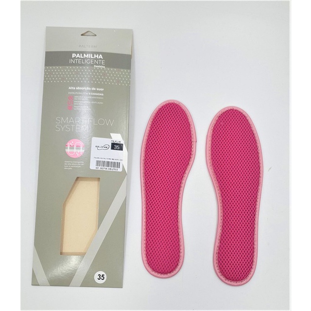 Palmilha Inteligente Palterm Masculina e Feminina A melhor palmilha disponível que se adapta fácil ao calçado, possui o sistema Smart Flow System que é o sistema inteligente de alta absorção do suor e ventilação dos pés.Desenvolvida a partir do sistema SmartFlow, a Palmilha Inteligente Palterm proporciona alta absorção de suor e ventilação dos pés. Além disso, devido à sua estrutura tecnológica, o produto se adapta a todos os tipos de calçados. Para garantir o máximo de conforto, a palmilha é composta de três camadas que garantem a manutenção prolongada de sua forma original. Na prática, a primeira absorve o suor, conserva os pés secos. Já a segunda tem a função de manter a ventilação, enquanto a terceira, macia e ultraconfortável, traz a sensação de maciez e bem-estar. COMO USAR PALMILHA INTELIGENTE Remova a palmilha original do calçado e posicione o produto com a parte cinza para baixo. Se preferir, utilize sobre a Palmilha Inteligente sobre a antiga. Após o uso, retire do calçado e deixe em local seco e arejado Informações Técnicas Marca: Palterm Ref: 360 Composição: Tecido 100% poliéster, espuma de PU, jersey cru e viés sintético. Algumas perguntas frequentes dos clientes: O PRODUTO É NOVO E ORIGINAL? Nossos produtos são TODOS novos, originais e são enviados com nota fiscal. TEM GARANTIA? Todos eles contam com garantia de 30 dias contra defeitos de fabricação.