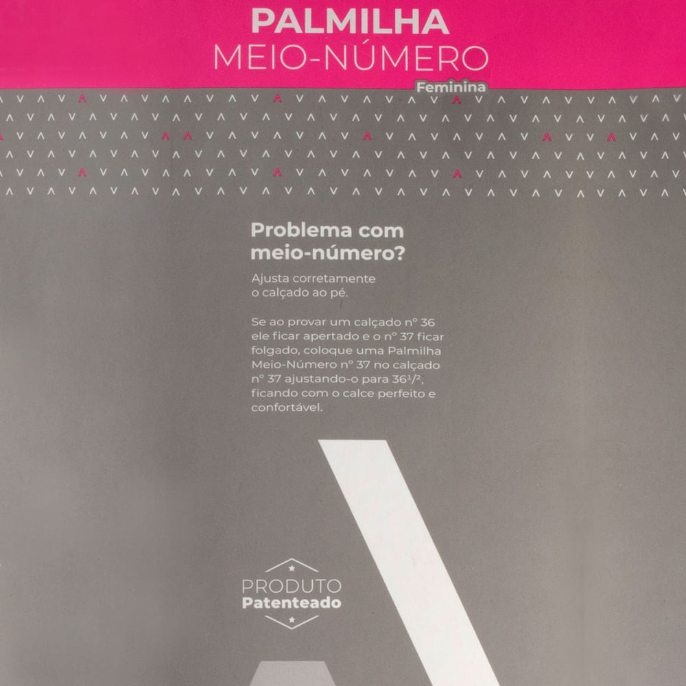 Ideal para quem tem problema de meio-número nos calçados. Ou seja, se um número fica apertado e o outro folgado, basta colocar a palmilha de meio número no calçado folgado, ajustando o calce para o tamanho perfeito. Características: - Desenvolvida para o correto ajuste do calçado ao pé - Pontos de sustentação no amortecedor - Produto patenteado