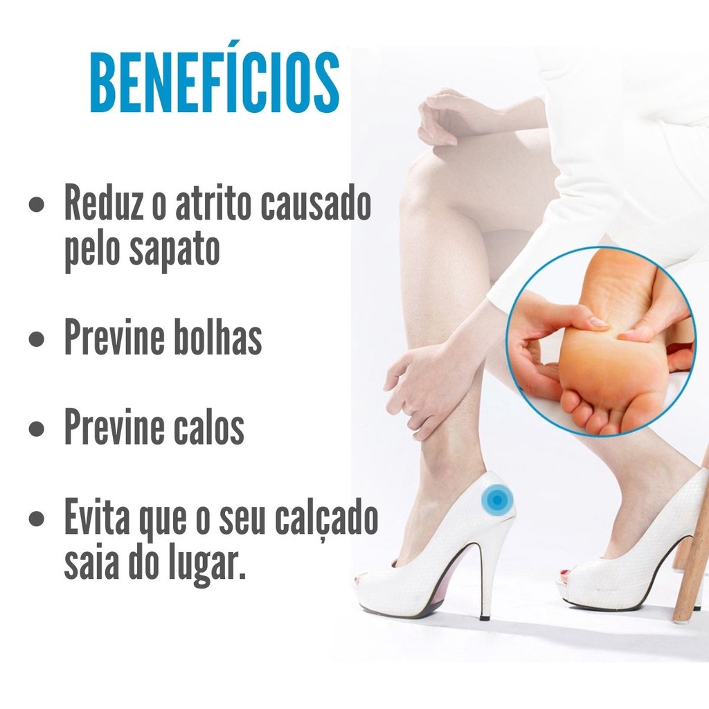 O Protetor de calcanhar reduz o atrito causado pelo sapato, previne bolhas, calos e evita que o seu calçado saia do lugar. - DESCRIÇÃO DO PRODUTO: Proteção e Conforto. Evita o atrito e formação de bolhas no calcanhar. Ajusta perfeitamente o calçado junto ao calcanhar. - INDICAÇÃO Ideal para o ajuste de calçados estilo peep toe - CARACTERÍSTICAS TÉCNICAS: Cor: Bege e Preto Material: Espuma EVA revestida de Tecido Tamanho: Único - Auto Adesiva