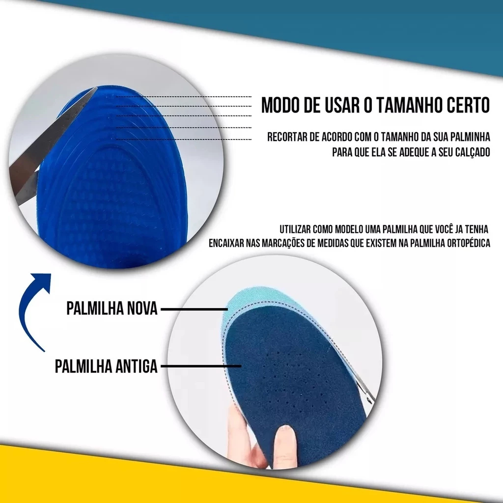 Palmilha Ortopédica Gel Silicone Anti-Impacto - Alívio Dores nos Pés - Par