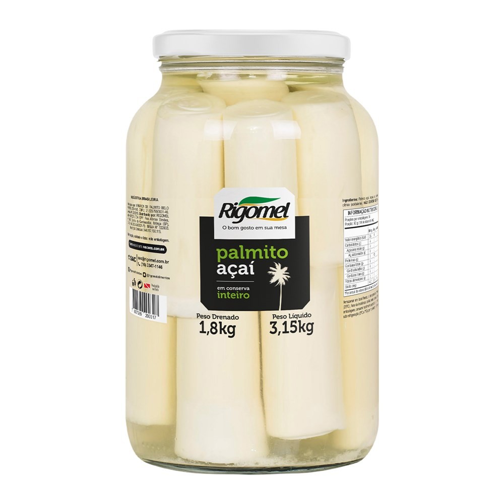 Palmito de Açaí Inteiro em Conserva Rigomel 1,8kg